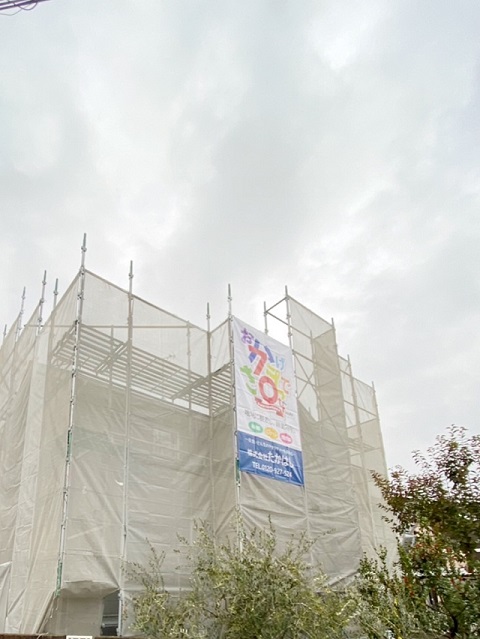 この足場キレイでしょーーー!!シートがピーンと張ってて。