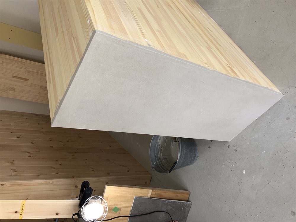 これは、カウンターにモールテックスを塗っているところです。